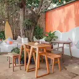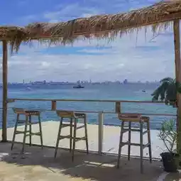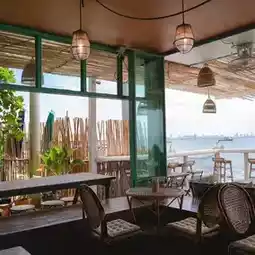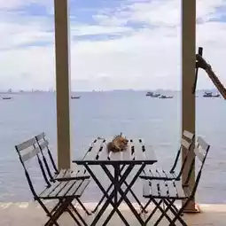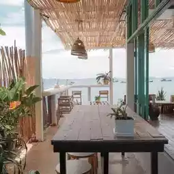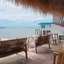 This beachfront cafe on Koh Larn is located opposite Wat Yai Samran, near the market, near the Na Baan Pier. Decorated in a modern tropical style with a Balinese feel, it's truly delightful. The atmosphere is shady and relaxing, allowing you to enjoy the sea view and the sound of the waves. The cute cafe offers indoor, outdoor, and rooftop seating, offering plenty of beautiful photo opportunities. There's a wide selection of food and drinks to choose from.