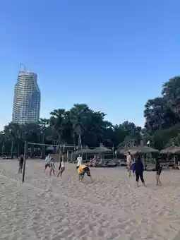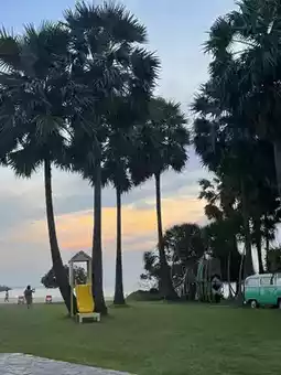 Today, I'm reviewing my trip to Pattaya. We visited the central to southern zones of Pattaya. Many people don't know that the sea during winter is incredibly beautiful. The weather is great, and the views are stunning. I recommend not sitting on the beach chairs with umbrellas because the food prices are quite high, and the cost of the beach chairs is very expensive. It's better to just walk around and enjoy the atmosphere, which is really nice. It's not too hot, the views are beautiful, and you can take amazing photos. If you visit the beach during winter, the sun won't be too harsh, so you can walk around comfortably. There aren't many people around this time because it's the low season. If you're looking for a place to relax, I highly recommend Pattaya Beach. It's close to Bangkok, easy to get to, and very convenient to travel to.