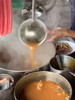 ❣️This humble stall dishes out bowls filled with bold and complex flavors that capture the essence of Penang. The thick rice noodles, generously covered with shredded mackerel fish and a myriad of fresh ingredients, sit in a broth that is a harmonious blend of spicy, sour, and sweet. The signature 'hae ko' (thick sweet prawn paste) elevates the dish, making each spoonful a memorable explosion of flavors.