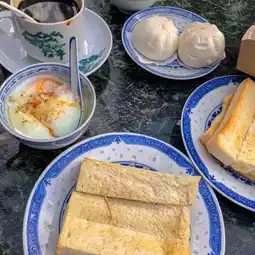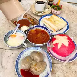 Once you arrive at the top, the environment is truly beautiful, with a touch of retro Balinese charm. The decor is all about a retro feel. When you're here, you must try their soft-boiled eggs, Nasi Lemak, mini char siu bao, and more.