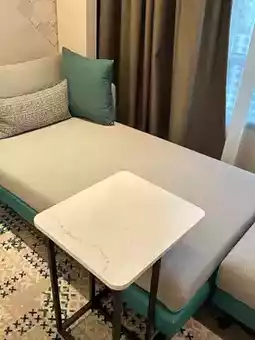 Imagine sinking into the cloud-like Marriott signature bed, swathed in crisp, high-thread-count linens. Light filters in through expansive windows, illuminating a tastefully decorated space. Every detail whispers of relaxation, from the plush armchairs to the calming color palette.
