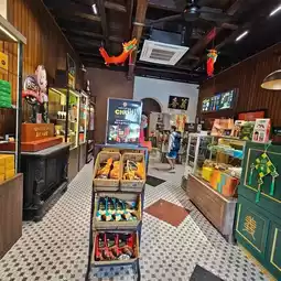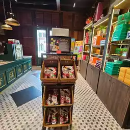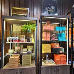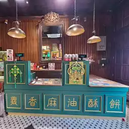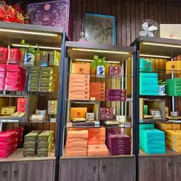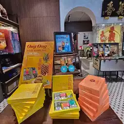 Ghee Hiang is a renowned old shop with a history of over 165 years, famous for its sesame oil and traditional biscuits, making it the oldest in Penang. Currently, it has four branches, with the Beach Street branch standing tall in this important business district since the late 1800s. The shop is strikingly decorated and offers traditional mung bean pastries and pure sesame oil. The packaging of the pastries is beautiful, making them perfect as gifts. They also offer Phuket-style Tao Sa Pia (cracked face pastries).
