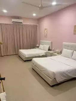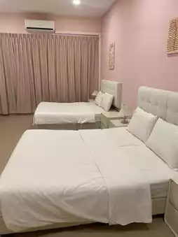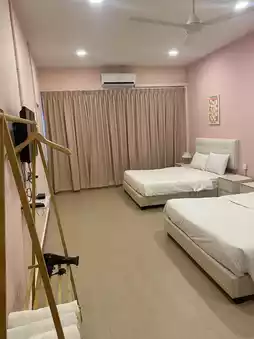 Prices vary depending on room size. On the day we visited, we booked a room for four, which cost around 300 baht per person. It's conveniently located near street art and restaurants. The hotel even has a swimming pool, making it a great value. Budget travelers will love this place. However, if you're traveling with adults or children, be careful with the bathroom. The floor is like tile in a house, so it's a bit slippery.