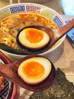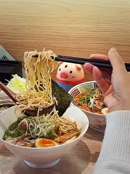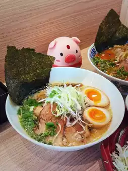 The soup base is made by hand from pork bones, old hens, and vegetables. The barbecued pork is evenly fat and lean, so tender and smooth. I also like the soft-boiled eggs. In general, the pork bone ramen tastes good😍