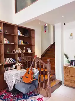 There is a bookcase and guitar on the other side🎸