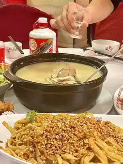 A pot of Maotai pork loin chicken oyster pot🍲 served hot 🔥, drink two bowls 🍵, warm to the bottom of the heart ❤️, with other dishes 🍱, perfect 👌!