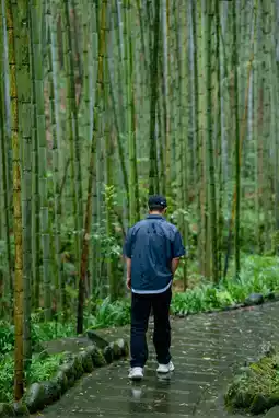 it feels as if one is cut off from the world, quietly listening to the rain hitting the bamboo