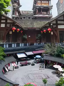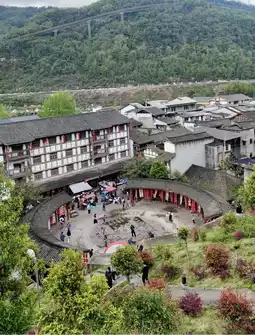 The houses are all built in the architectural style of Western Sichuan residences, with red lanterns hanging at the door of each household and green plants and flowers placed, exuding a strong sense of life