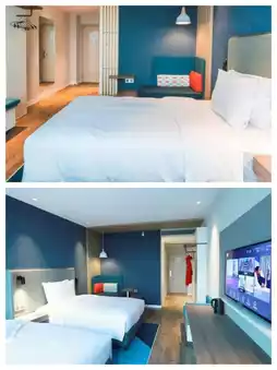 The rooms feature a simple and practical style, equipped with the signature "Express Select Bed" (the mattress has just the right firmness, so no back soreness😌), a 43-inch smart TV, and free high-speed WiFi. Some room types have small balconies that get morning sunlight. The bathroom has a dry and wet separation design and provides free toiletry kits, hairdryers, and even thick-soled slippers—very thoughtful details🥰.