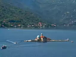 In the middle of Boka Kotorska Bay, opposite Perast, there's a tiny island with a blue church dome. It looks as if it emerged from the sea, but it's no miracle of nature—it was created by humans. Stone by stone, boat by boat.
