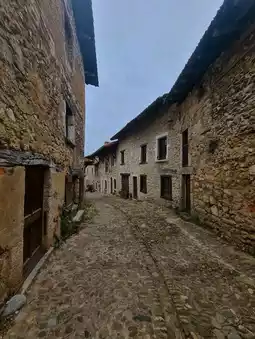 • 🧱 Stone houses and wooden shutters line the narrow cobbled streets