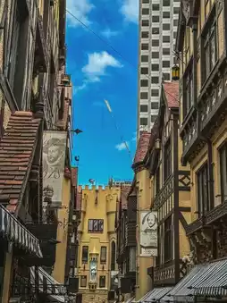 🏰 Gorgeous Tudor-style façades and medieval details.