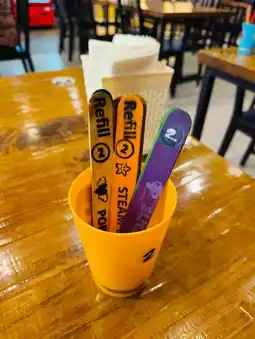 They will cook the food for you and serve it on a dish, making it very suitable for those who prefer not to BBQ themselves. If you need to refill the meat or steamed egg, just pass the stick with the written items that have been put on your table to them.