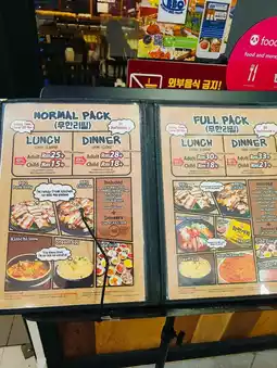 There are three types of buffets to choose from. The first is the normal pack, which includes pork belly, BBQ chicken, steamed egg, and kimchi soup. You can upgrade to the full pack, which additionally includes kimchi pancake and kimchi steamboat. The super upgrade version is the Galbi Set, which includes an additional rice ball and sweet pork. All buffet sets come with unlimited refills of side dishes, and the dining time limit is 1.5 hours.
