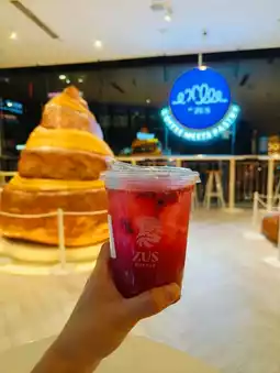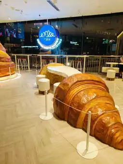 During my trip to Malaysia, I visited an interesting café called COFFEE MEETS PASTRY by ZUS. What stood out the most was their signature logo—a giant croissant sculpture placed right in the center of the café! It was impossible to miss and made the atmosphere feel unique and fun.