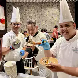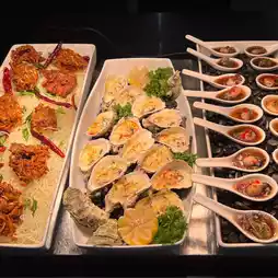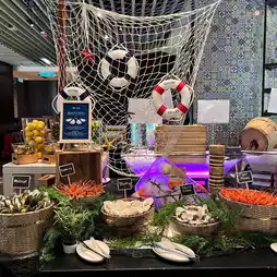 There are Fresh Oysters sourced from around the world, presented fresh and ready to be shucked on the spot; Cooked Oysters - made into delicious Tempura Oysters, Oysters Au Gratin, and Oysters Omelette…. There are also signature dishes such as the Salt Baked Whole Salmon and the comforting Double Boiled Chicken Soup; you can customize your bowl of delicious noodles with soup and gravy of the day and relish the numerous other seafood delicacies and dishes that make this buffet a true feast.