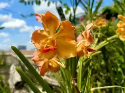 A very well tended and lush garden on the rooftop amongst the water tanks and other building equipment. Quite large with a lot of plant variety with blooming flowers. Obviously taken care with a lot of love.