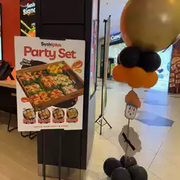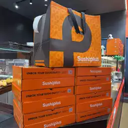 Their sushi counter was an absolute delight, featuring beautifully crafted rolls like Mango Salmon and Grilled Salmon, each one looking like a tiny edible masterpiece. The bright orange "Sushi Plus" boxes stacked up for their party sets were hard to miss—perfect for sharing the joy of sushi with friends and family during the holidays.
