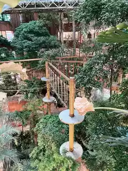 Suitable for both kids and adults, the adventure park blends physical activity with the beauty of a tropical setting. The vibrant atmosphere, complete with real trees and flowing water features, makes it feel like a true jungle escape. Whether you’re climbing, swinging, or just soaking in the views, it’s a fun and refreshing way to spend the day.