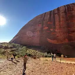 • Walk the 10 km Base Track – spot ancient rock art, caves, watering holes, and learn the Anangu stories along the way.