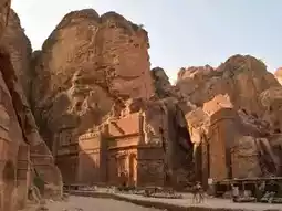 Petra is an ancient city located in the southwestern part of Jordan. It was the center of an Arab kingdom in Hellenistic and Roman times. The city was built on a terrace, pierced from east to west by the Wadi Musa (the Valley of Moses). Petra is famous for its rock-cut architecture and water conduit system.