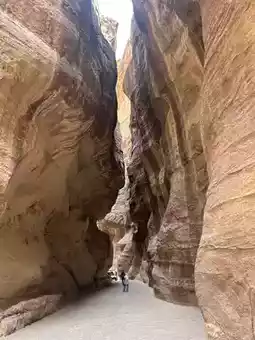 The walk from the visitor centre to Petra’s most iconic monument, the treasury is an adventure all by itself. As you walk through this 1.2 km long cavern known as the Siq you can witness the towering rock formations above you as the narrow passageway winds downhill. The rocks themselves almost look different colours throughout the day, dependent on how the light shines on them.