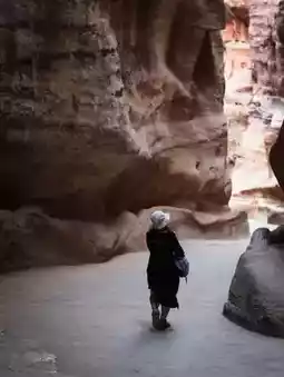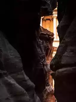 As you walk deeper, footsteps echo against the rock surface, light gradually penetrates in small lines. At the end of the path—through a narrow gap between the cliffs—the first glimpse of Al-Khazneh, or The Treasury, emerges.