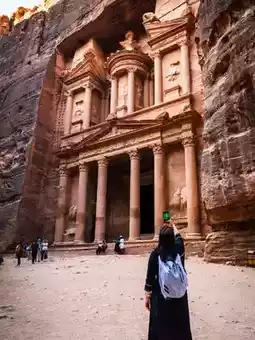 This towering structure, carved into the cliff face, rising over 40 meters, is Petra's most striking symbol. Scholars believe it was built around the 1st century BC as a tomb or temple dedicated to the gods. Its architectural style blends Greek and Middle Eastern elements—Corinthian columns, triangular arches, and sculptures depicting the religion and beliefs of the Nabataeans.