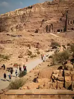 The wide plaza in front of the cathedral is filled with camels decorated with brocade and tourists from around the world—an image that has become an iconic image of Petra, featured in postcards, books, and blockbuster films like Indiana Jones and the Last Crusade.