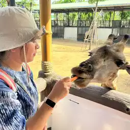 Sri Ayutthaya Lion Park. This place is spacious, with many animals, including many crocodiles, bird shows, giraffes 🦒 elephants, and many more. You can feed them at every point. Tigers 🐅 Feed the tigers. The feeding price is 50 baht. The entrance fee is 150 baht for adults and 50 baht for children. There are tiger, elephant, dolphin, and crocodile shows. 🐊 Feed giraffes, zebras 🦓 There is a cat house corner.