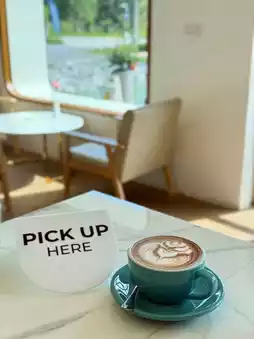 • Decoration: The shop is decorated in a minimalist style, white and wood tones, with a pond in front of the shop and shady green trees.