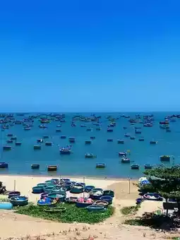 📍: Located beside the main road in Mui Ne, this beach is quiet, primitive, and features colorful fishing boats. It lacks the hustle and bustle of crowded areas, remaining undeveloped. The sunlight is intense, so be sure to use sun protection.