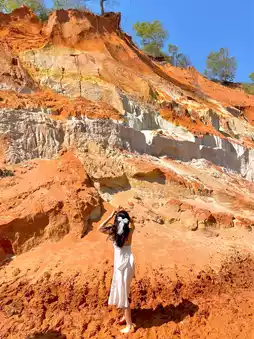 1️⃣ The Fairy Spring had a desert feel because of the red soil, and the cliff behind it was full of photo zone emotions. Many people pass on it and don't go, but I personally recommend visiting.