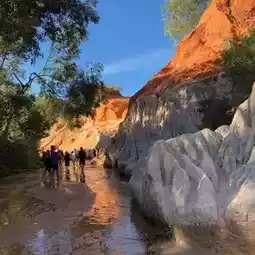 Suoi Tien, or Fairy Stream, is a breathtakingly romantic destination in Mui Ne. The poetic scenery, with its white and red sand mountains, coconut palms, and lush greenery, transported me to a dreamlike world. The stream's reddish hue, courtesy of the sunlight and red sand, added to the enchantment.