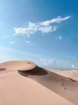 White Sand Dune, a vast white desert with a lake in the distance. Take pictures of the beautiful desert with the beautiful shining sky. It feels like you are standing in the sky.