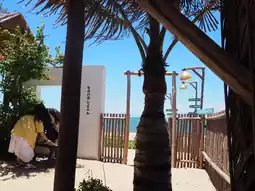 A cafe right next to the sea with a great view. There's a super stylish cafe at the end of a complicated residential area called ??? in a place like this. I thought to myself that this would never happen in Japan, but I enjoyed the stylish drinks, which were also surprisingly cheap. It was hot but comfortable at the cafe right next to the sea 😌