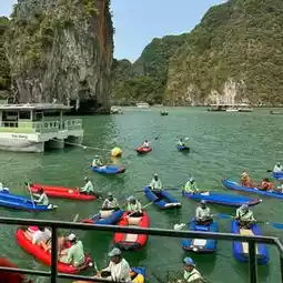 We set out a bit late. Arriving at the Naka Island zone, there is a stop for you to swim first. And lunch was served after this. It's a buffet style. You can add it continuously. Once full, sit and chill until you reach #Hong Island. In this activity, there will be kayaking service. that there will be villagers as oarsmen to take us to see the beauty of Koh Hong I will say that he is very cute. There is also a heart-shaped leaf cut out for us to use as a photo prop 😍