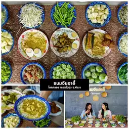"Khanom Jeen A-EE" in Khok Kloi, Takua Thung District, Phang Nga Province. The shop uses fresh Khanom Jeen noodles and offers 7 types of curry to choose from: crab curry, chicken feet jungle curry, chili paste, coconut milk curry, fish entrail curry, green chicken curry, and fish entrail curry in coconut milk. The curry paste is homemade in a genuine southern recipe. The taste is really spicy and flavorful. There are also fresh vegetables prepared for you to eat in full. What I like are boiled vegetables in coconut milk and well-peeled elephant fish. #TeamSouthern