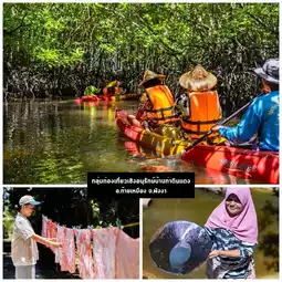 Baan Tha Din Daeng Ecotourism Group, Thai Mueang District, Phang Nga Province, which has both kayaking activities, viewing the beauty of the thousand-rai mangrove forest, learning the history of ancient mining and mineral panning, tie-dyeing from natural materials, and hydroponic vegetable farming, try delicious salads, contact for more information at Ban Tha Din Daeng Ecotourism Group