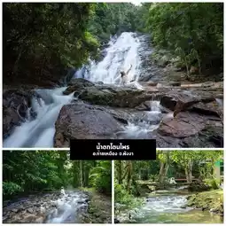 Ton Phrai Waterfall is located in Khao Lampi-Hat Thai Mueang National Park, Amphoe Thai Mueang, Phang Nga Province, not far from Thai Mueang Market. Ton Phrai Waterfall is a medium-sized waterfall that flows down steep rocks. From the entrance to the waterfall, it is about 700 meters away. The path is easy to walk. Along the way, we will find waterways. Some places are streams, some places are pools. Where we can stop to take pictures all the time