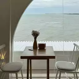 The interior is decorated in a uniform tone of white and brown, and features large windows offering panoramic sea views. It's absolutely stunning! Photography enthusiasts will love this place, with plenty of photo opportunities.