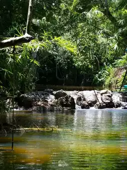 This time in Thai Mueang, we stopped by this charming restaurant, a great escape from the hustle and bustle of the city. #MeeSuk is located in the forest by a stream. The atmosphere is wonderful, with tables along the stream and in the stream. You can even dip your feet and eat in the water, or even play in the water. It's also great for taking the kids, as the water isn't too deep.