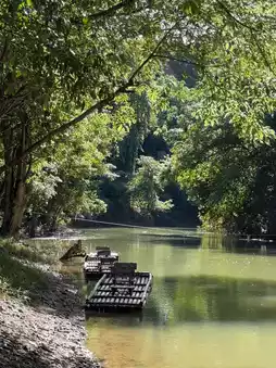 Let's recommend accommodation in Khao Sok. For those who are interested in rafting in Khao Sok, you must come here, Khao Sok River Canoe. The resort is right next to the river with a very beautiful view. Accommodation details are as follows: there is a package of 990/person and 1,200/person. The two packages are different in the room type. 990 is an A-shaped house, not very large, suitable for 2 people, economical. As for the 1,200 package, it is a dome tent on the riverside and the room is larger. We had children with us, so we chose this one. The rest of the packages in both are the same: rafting, cold pork barbecue, breakfast. The rafting takes about 1.30-2 hours. We recommend rafting at 4 pm, the weather is nice and not hot. After rafting, eat pork barbecue. The pork barbecue is on an electric stove and eat in the air-conditioned room. Don't be afraid of mosquito bites and it's not hot. The set includes shrimp and squid. There is also 1 plate of fried rice. I personally think that the ingredients are fresh and the amount is just right for 2 people, but the dipping sauce is not that great. Breakfast is rice porridge and American breakfast, a lot of food. ** The staff provides good service and speaks very well. The rooms are clean. The resort is also clean. Very shady**#Khao Sok accommodation #Khao Sok #Khao Sok National Park #Khao Sok rafting #cheap accommodation #Surat Thani accommodation
