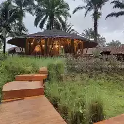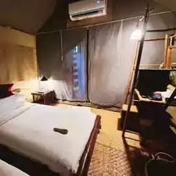 This place feels like escaping the chaos to hide in a lush green forest, embraced by majestic limestone mountains. The accommodation features stylish glamping tents. Despite being tents, they are fully equipped with modern amenities, including air conditioning, private bathrooms, and a private balcony with breathtaking mountain views!