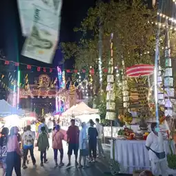 It is a small temple in an alley, not many people, there are shops selling things from people in the community, you can walk around without being crowded