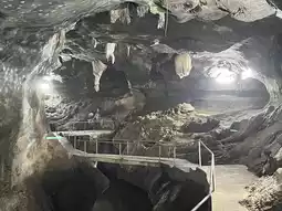 This time, we chose to go into Tham Nam Lod, which has beautiful natural stalactites and stalagmites inside. Each cave has a spacious hall with many forks leading to different caves. There are 18 caves, but the one I like the most is the cave leading to the reclining Buddha image. The view is the most beautiful.