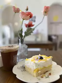 The café offers seating on both the first and second floors, with a menu featuring a variety of drinks and delicious cakes to choose from.