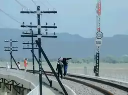 Stand by the window when the train crosses the dam to get a shot of the sky, water, and endless train tracks