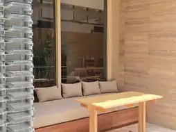 A super cool new café in the Phayathai area that catches your eye at first sight with its modern angular building. It stands out with glass block walls that softly play with natural light. The front wall is designed with simple square openings that add a subtle touch of creativity. Inside, the café is decorated in a clean white minimalistic style combined with light brown wooden furniture, creating a warm and relaxing atmosphere.
