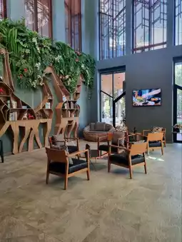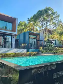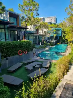 Atmosphere/Location - Green Pix Khaoyai is a relatively new hotel with a beautiful design. It is located in the middle of the forest and mountains, making the air fresh, cool, and quiet. There is an outdoor swimming pool decorated like a waterfall flowing down in layers from the mountain. The hotel is quite far from tourist attractions, but there are still cafes and restaurants nearby. It is suitable for those who like peace and quiet and want to relax. Or you can use the services of cafes, restaurants, and wine bars.